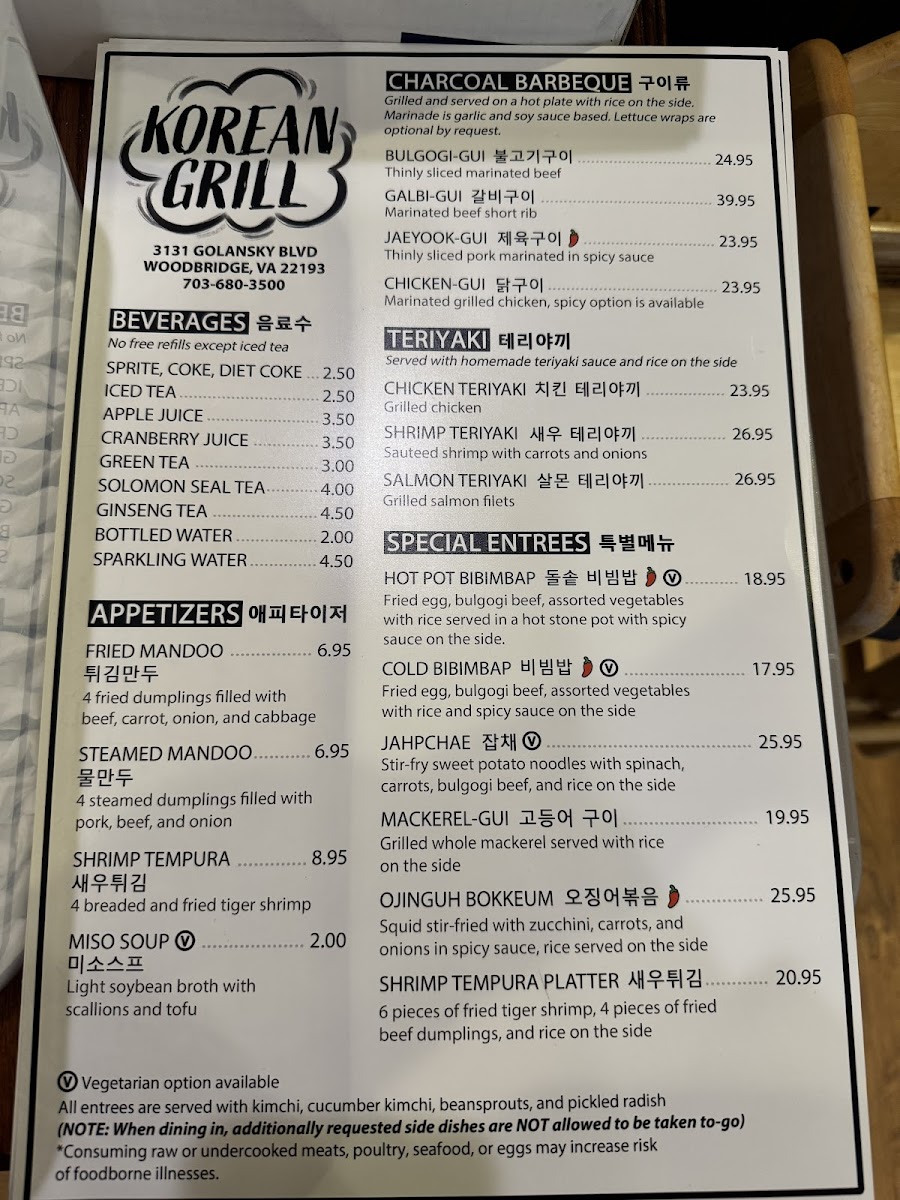 Korean Grill Menu